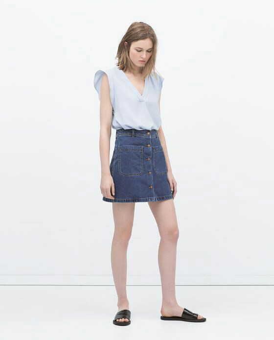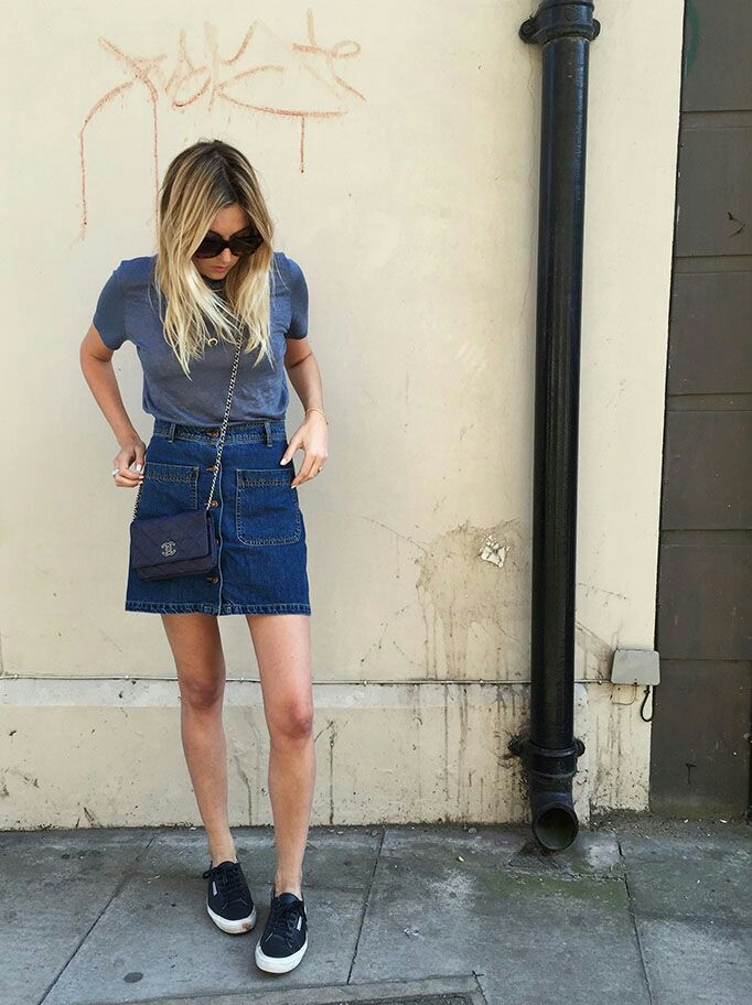 Uno de los must haves del verano que hemos visto muchísimo ultimamente en IT Girls como Alexa Chung son las faldas de mezclilla o denim skirts que podrán encontrar ya en todos lados, es importante que tenga corte A y botones al frente.