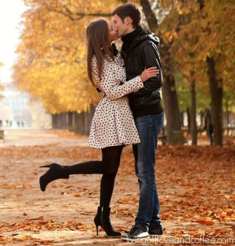 Young beautiful couple in the Luxembourg garden at fall. Paris France