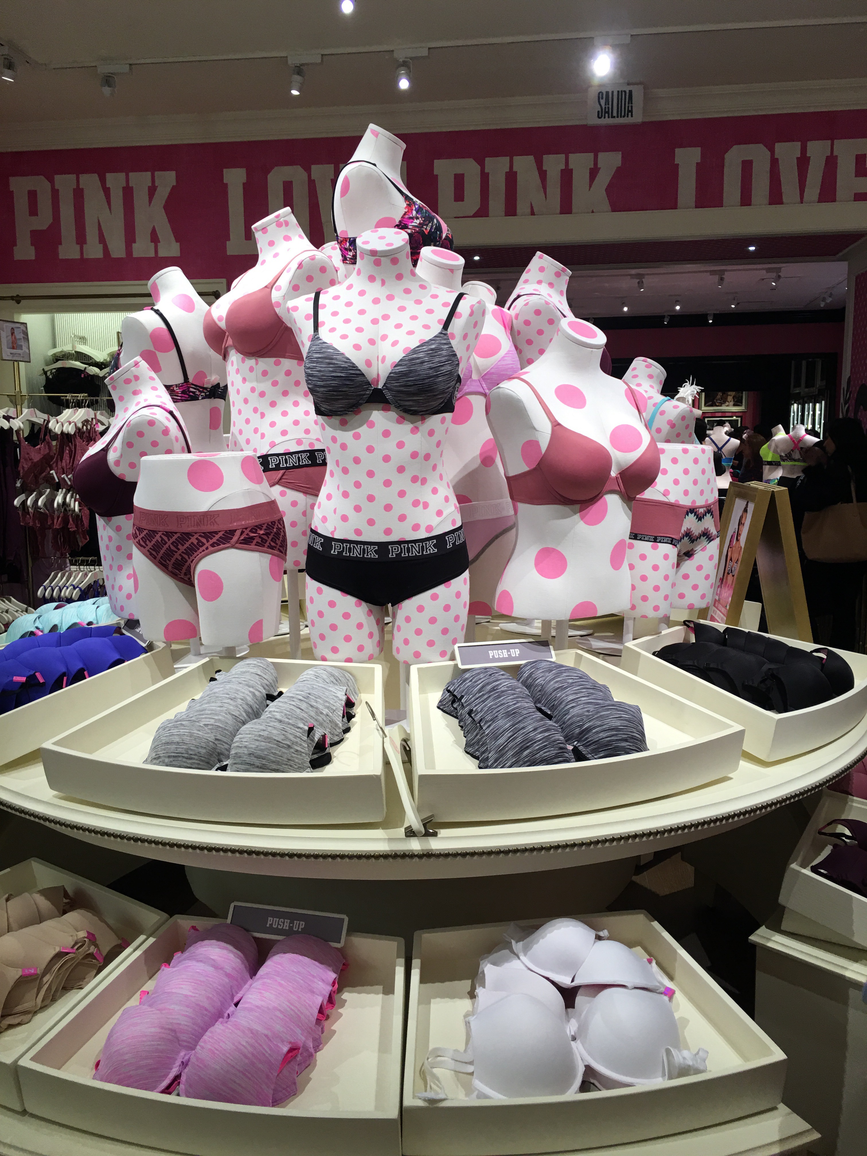 Como saben ya teníamos desde hace un par de años boutiques de Victoria’s Secret en México aunque solo con algunas fragancias, bolsas y accesorios, pero al fin hoy se inauguró la primer boutique con toda la línea de lencería, Pink y Active Wear en Antara. De verdad jure que sí llegaba temprano pasaría como sin nada porque habría súper poquita gente y así, obvio no fue cierto. Llegue a Antara por ahí de las 12:00pm y mi sorpresa fue encontrarme la boutique hermosa con globos rosas y negros perooo con una fila enorme! Decidí formarme porque había quedado de comer más tarde con una amiga y tenía tiempo, y la fila tal vez por la hora avanzó bastante rápido. Como en 15 minutos o menos ya estaba adentro. Lo único malo es que estaba un poco lleno y la gente o hasta la fila para pagar te obstaculizaba ver las prendas a detalle y con más calma (como me gusta comprar a mi). Así que al principio di una vuelta completa a la tienda y decidí que solo compraría lo que necesitaba y ya traía en mente: pantys y un bralette y listo! Sino acabaría súper pobre como en mi último viaje donde gaste mismo dinero en esta tienda.