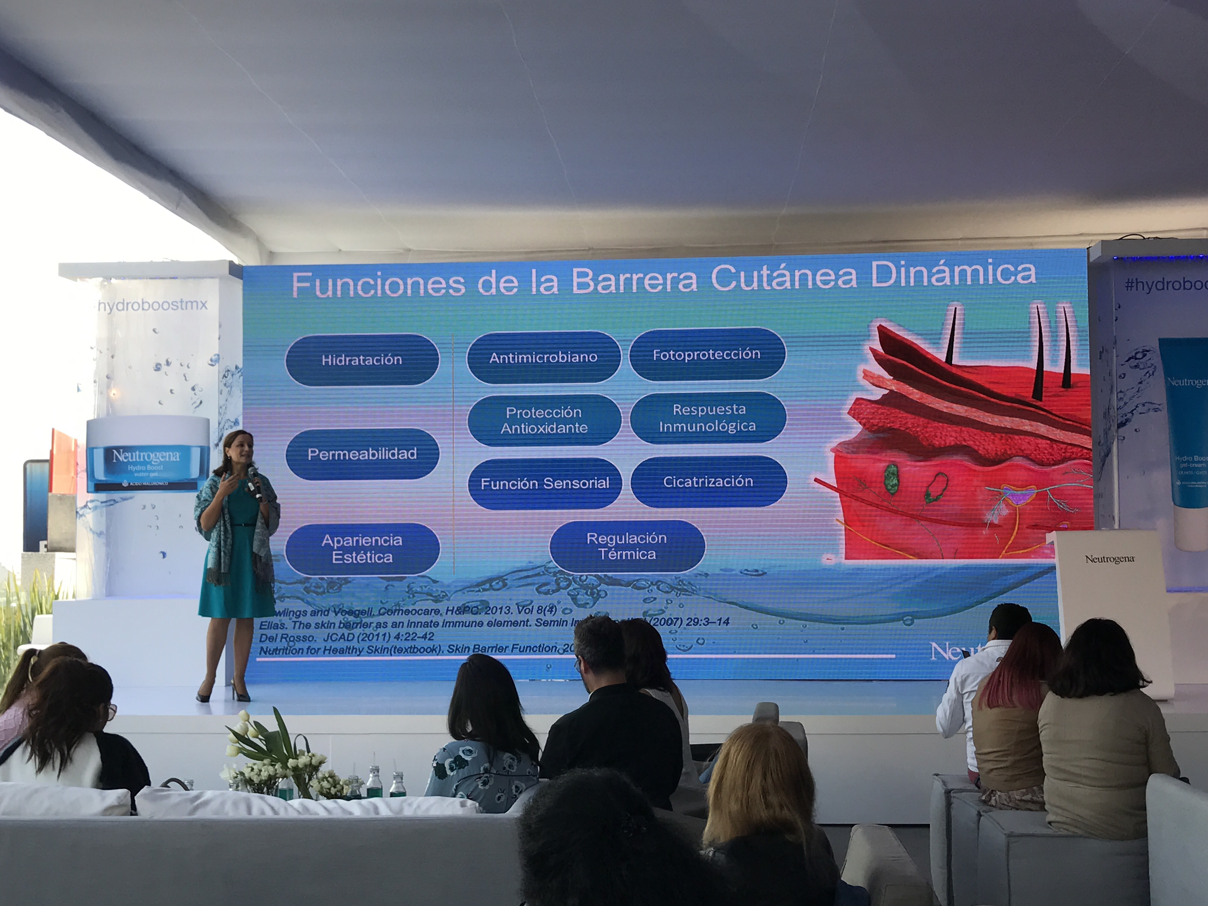 En este lanzamiento Neutrogena nos sorprendió con su más reciente producto hidratante, pensado en que entre los cambios de clima y el estilo de vida que llevamos de pronto no tomamos suficiente agua haciendo estragos en nuestra piel. Neutrogena nos trae Hydroboost que es un gel muy ligero, se absorbe rapidísimo y es sumamente hidratante y que puedes utilizar en la mañana y en la noche, o bien cuando tu piel necesite verse más sana. Su principal ingrediente es el Ácido hialurónico purificado que actúa como una esponja que retiene el agua, hidratando las células secas de la piel. Cuenta con la capacidad de absorber hasta 1,000 veces su peso en agua, liberándola progresivamente en la piel. Además de otros ingredientes como el extracto de oliva, glicerina y factor «oil free».