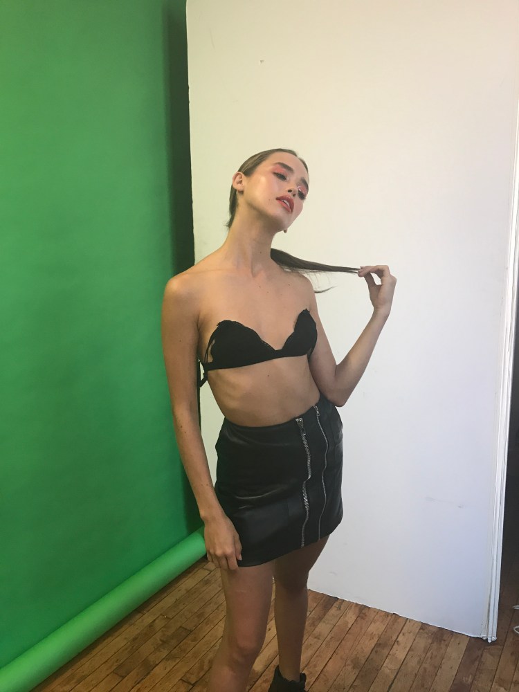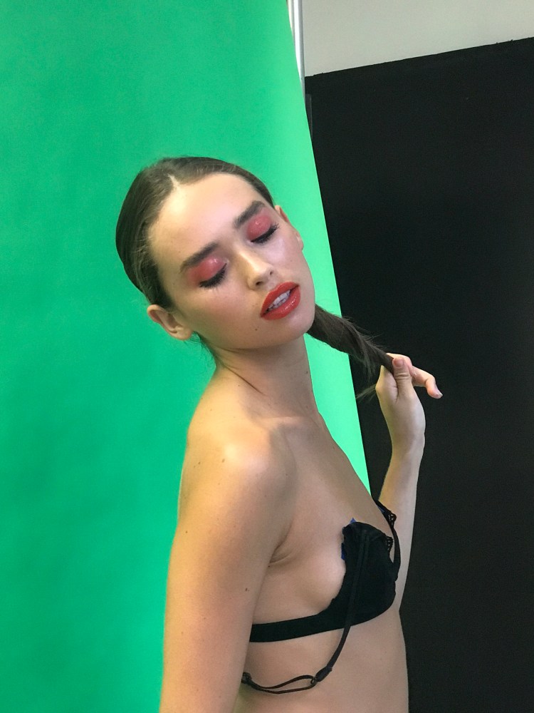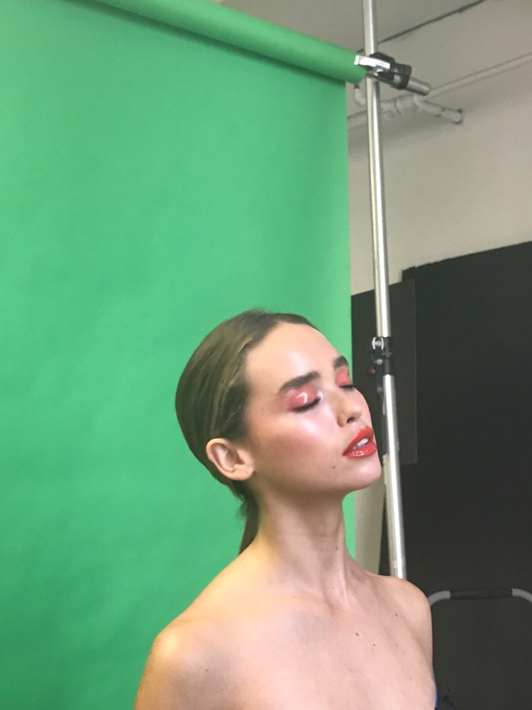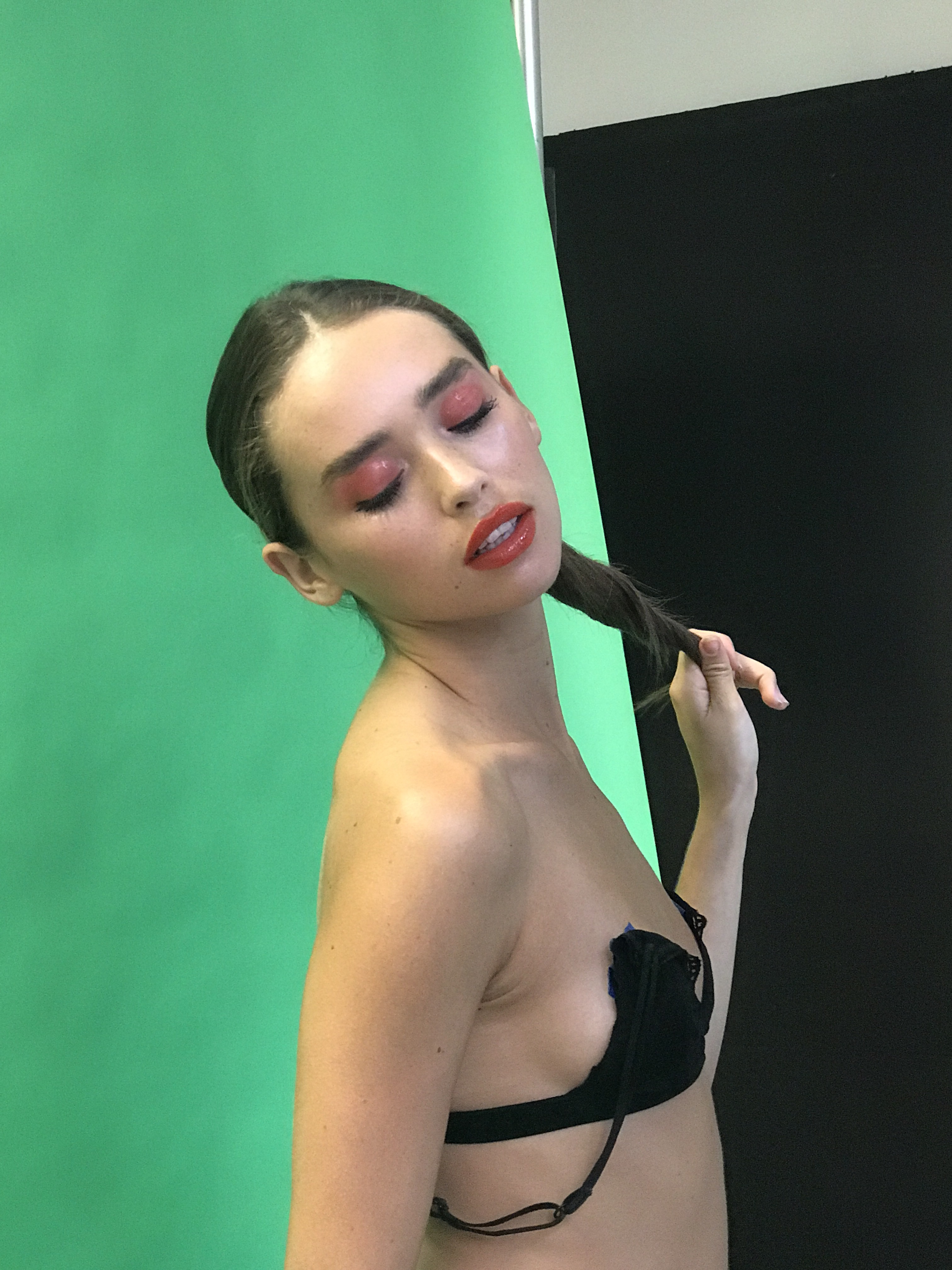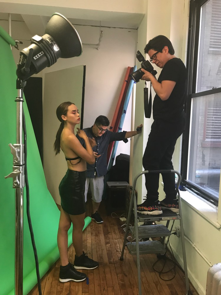 Por la tarde fuimos a un estudio cerca del Empire State, donde teníamos que crear un look y concepto de maquillaje y peinado y dirigir al equipo de maquillaje y peinado para lograr exactamente lo que queríamos. Después un fotógrafo profesional capturó nuestros looks y realizó algunas tomas. Mi look tenía tonos naranjas y estaba inspirado en la tendencia glossy que está tan de moda para este verano. Imagine un look de vacaciones por lo que elegí un peinado sencillo y básico de verano: una ponytail baja y un fondo verde.