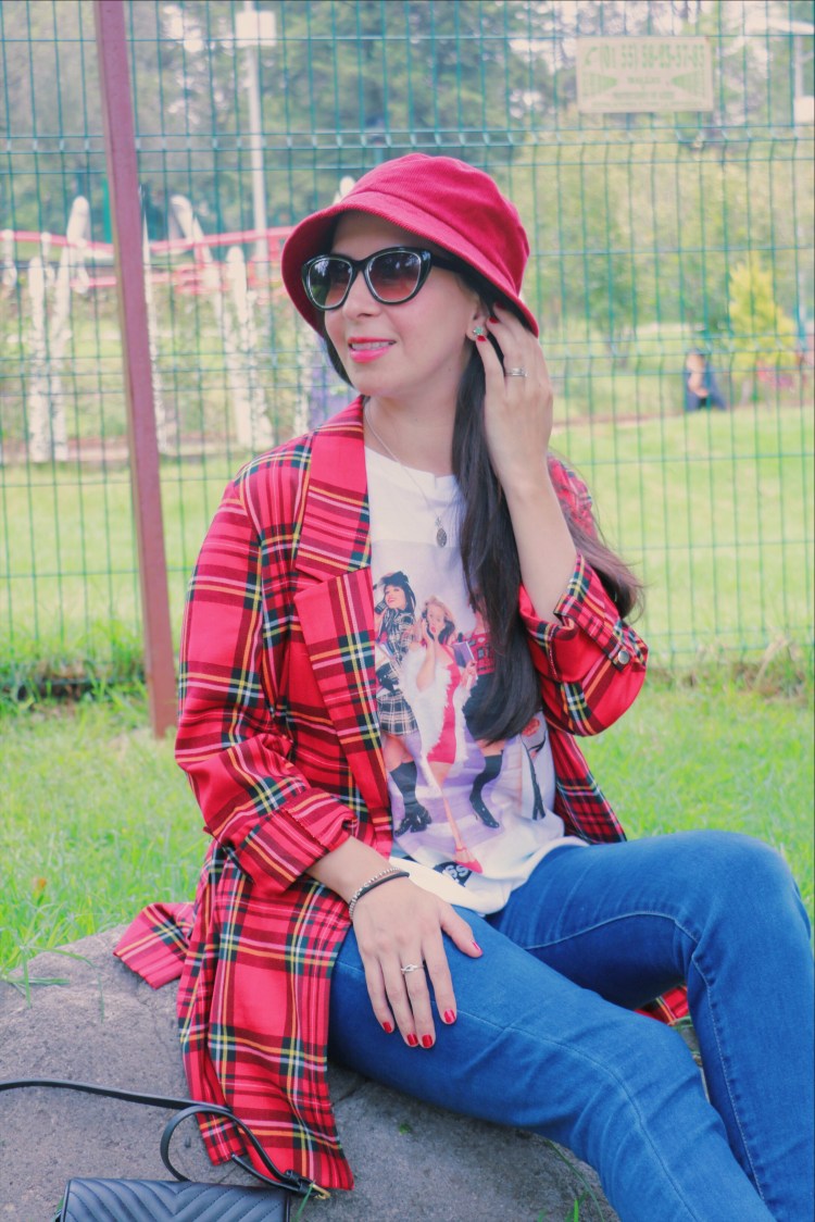 I’m so excited because finally I could use my favorite bucket hat again! Years ago, I was fan of this fashion trend without even knowing it, when I fell in love with this hat and bought it. Then I wear it for College and my exchange in Spain. Then a lot of years ago I can wear it again and with pride and match it with a Clueless t-shirt (one of my favorite movies ever) and a check print blazer.