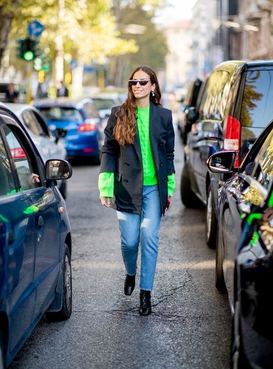 Si te gusta arriesgarte más entonces prueba con un suéter, blusa o vestido, combinado con tonos neutros, si tienes un outfit simple una prenda neón le aportará la personalidad que necesitas. También puedes apostar por combinarlo con negro o mezclilla, un win win.