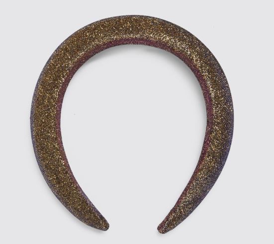 Diadema acolchada dorada: una opción con más color y brillo en glitter. Zara, compra aquí