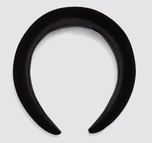 Diadema acolchada negra: si estas empezando a usar esta tendencia, es el modelo más básico y seguramente te hará sentir más cómoda. Zara,compra aquí