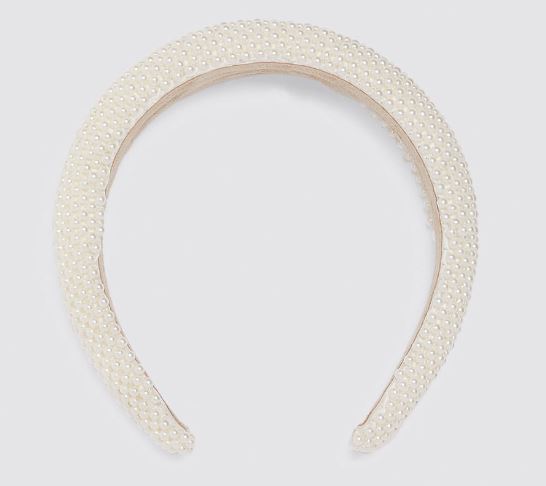 Diadema acolchada con perlas: además de que sean gruesas, las aplicaciones están muy en tendencia, puedes apostar por una de perlas para un look más clásico. Zara compra aquí
