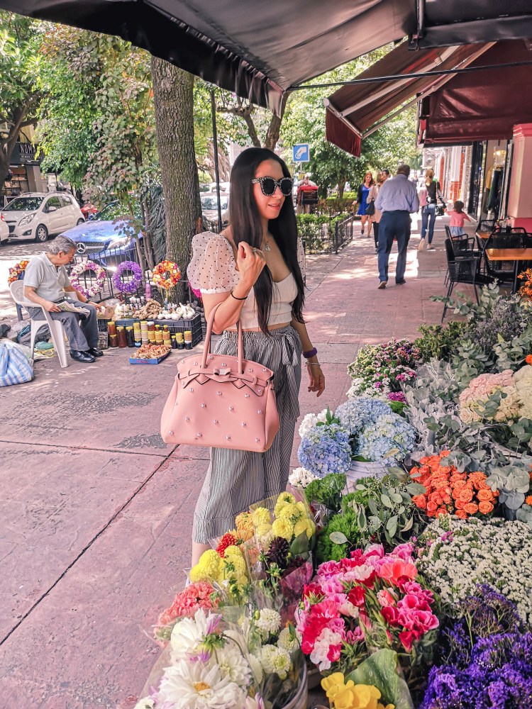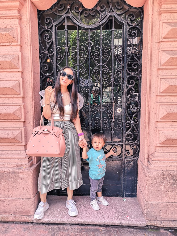 Para crear este outfit cool de fin de semana tuve un pequeño inconveniente y es que la blusa de pronto no es tan cómoda, sobretodo si como yo tienes que correr y cargar a un bebé, pero decidí compensar su comodidad con unos pantalones blancos con rayas grises y mis tenis chunky mega cómodos y un bolso que le cabe todo, que es rosa pastel y que parece que tiene burbujas!. Y al final funcionó perfecto porque logré correr detrás de bebé bombón, desayunar en familia y todo lo que hace en una mañana de fin de semana.