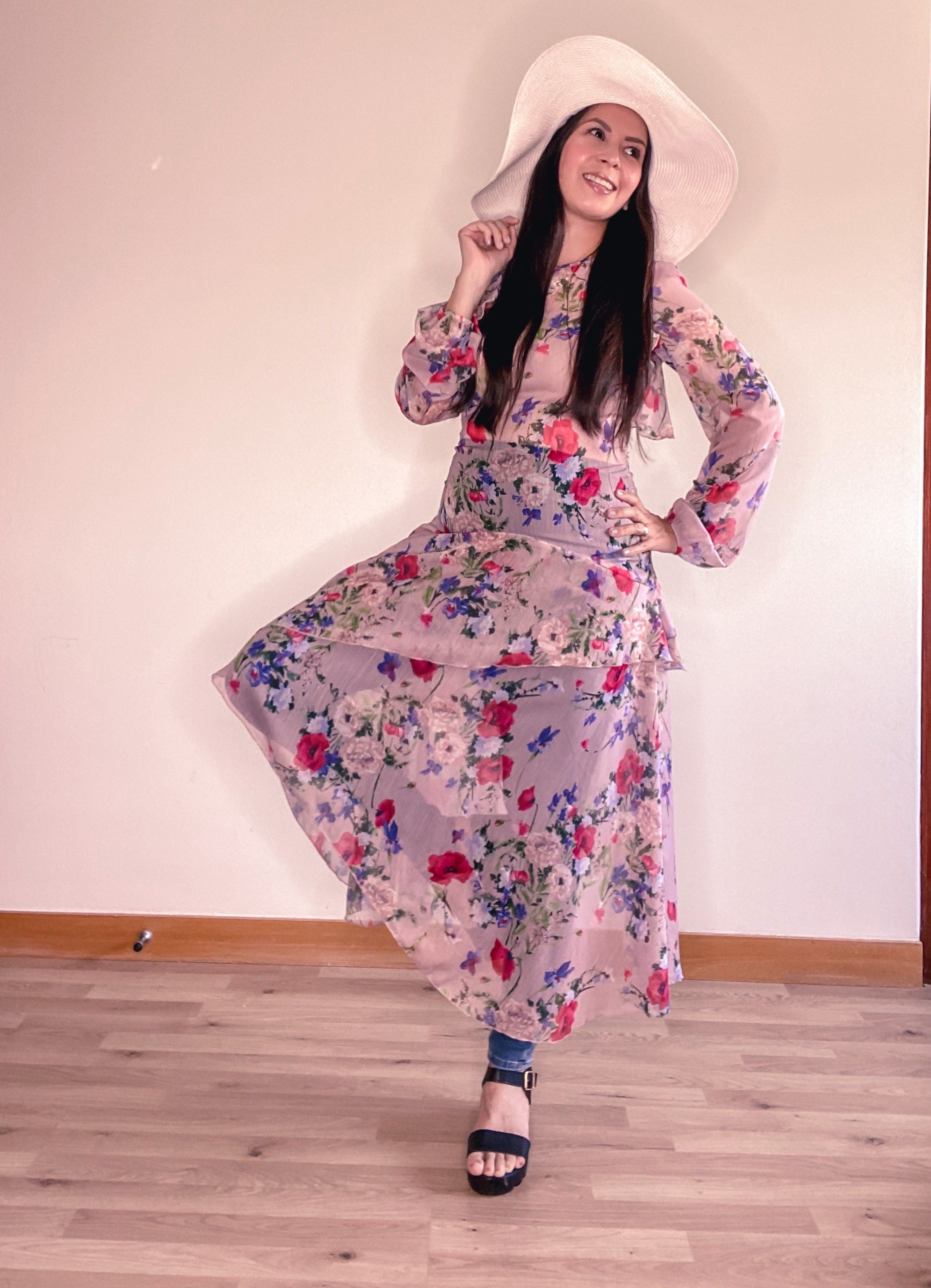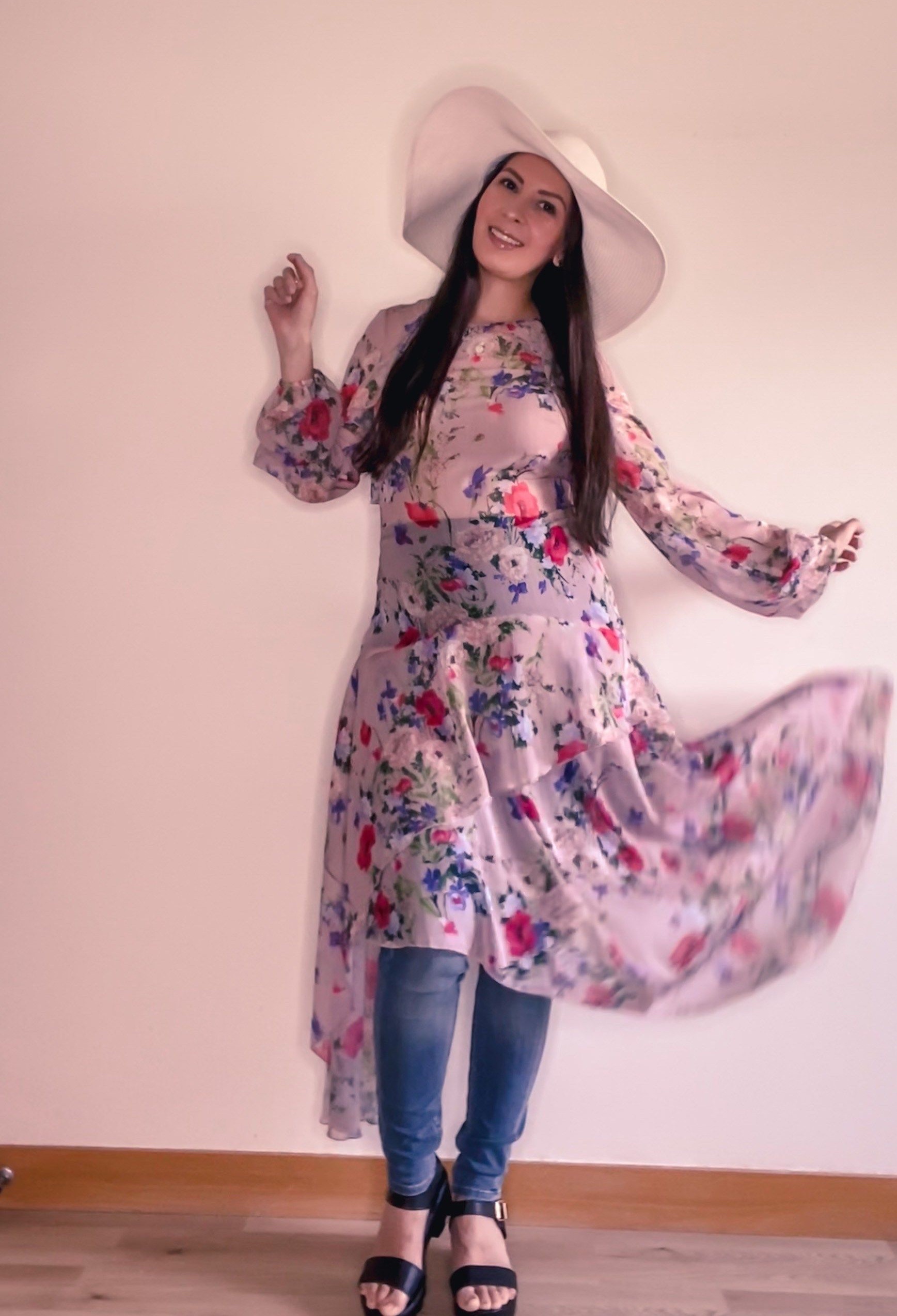 Mi outfit de hoy consta de jeans de embarazo que compré hace un par de semanas en H&M y no saben cómo batalle para encontrarlos porque todos en la página me aparecían como agotados hasta que encontré estos. La blusa/vestido tiene transparencias y flores y ya tiene un par de años conmigo pero me pareció muy apropiado para festejar el verano y además mi baby bump de 4 meses todavía cabe en el, lo usé junto con un sombrero de playa y estas sandalias divinas que pueden encontrar en SheIN aquí. Además recuerden que si usan mi código 2FashionMa tendrán el 15%.