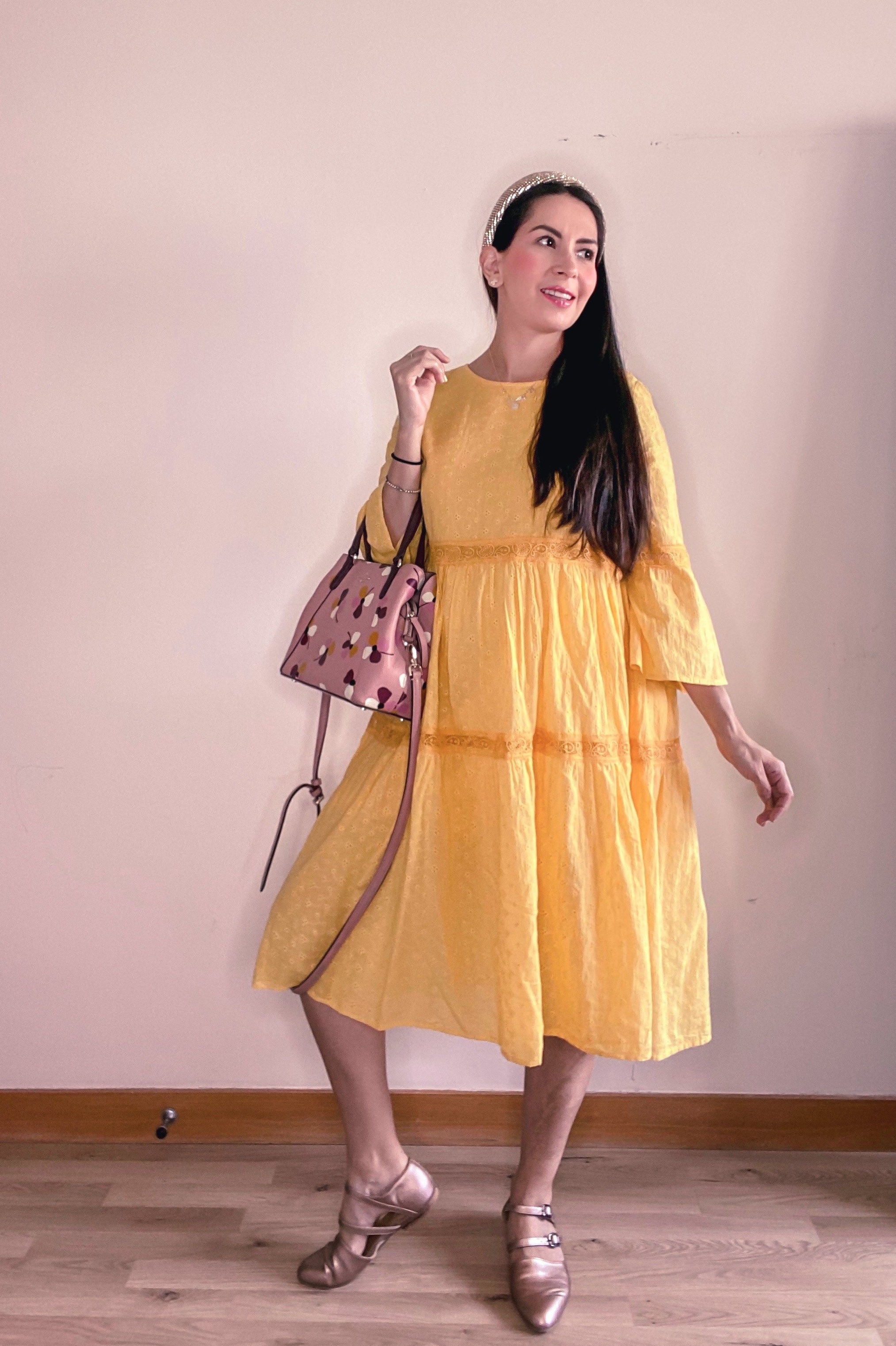 Vestido boho amarillo: es ideal para los días más calurosos porque es súper fresco. Las mangas campana le dan un look más 70s y lo puedes usar con tenis, falts, tacones o sandalias y siempre darle un toque diferente. Compralo aquí. Código 15% 3FashionMa
