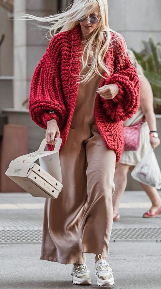 Pues muy sencillo, con un cardigan o suéter en un color que haga juego, puede ser XLL, cropped, pegadito o como prefieras y te juro que funciona y así podrás seguir usando tus vestidos durante el día y por la tarde taparte con un suéter calientito. Si estas en casa todavía es una combinación muy cozy e ideal para estar en tu sala o en tu cama leyendo, viendo netflix, hasta lavando los platos.