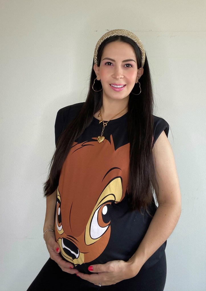 Por suerte la T-shirt si me quedó, he estado batallando un poco más con la ropa que en mi embarazo pasado, porque hace 3 años encontraba todo con la tendencia oversized y ahora hay tops y ropa mucho más ajustada al cuerpo, pero para mi buena suerte esta playera si me quedo y mi baby bump de 7 meses está cómoda y a la moda. Recuerden que no hay que abandonarnos aunque estemos embarazadas, si te gusta la moda siempre puedes encontrar ropa y accesorios que te hagan verte y sentirte a la moda, cómoda y cool.