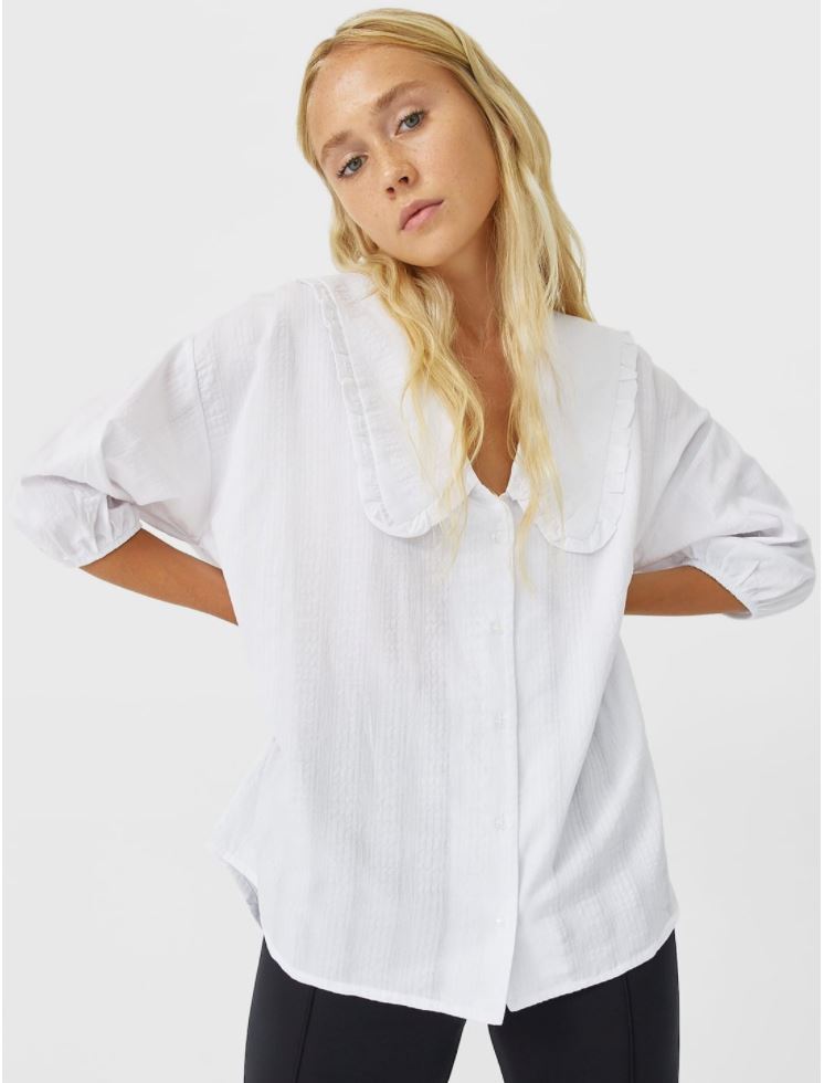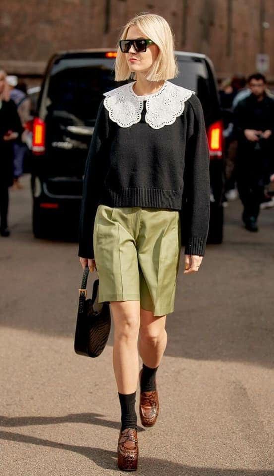 Son estos cuellos grandes y blancos, que nos recuerdan los vestidos que teníamos de pequeñas o hasta nuestros uniformes de la primaria. Esta temporada están de regreso pero ahora mucho más grandes y vistosos y los vemos desde en camisas blancas (un básico sin duda) hasta en suéteres preciosos y sudaderas. Estas prendas divinas podrás usarlas con faldas midi, jeans, leggins, biker shorts, minifalda, en fin, el cielo es el límite. Y me parece un gran acierto comprar al menos la camisa blanca básica o bien un sueter bonito en un color neutro que puedas combinar y ponerte con todo.