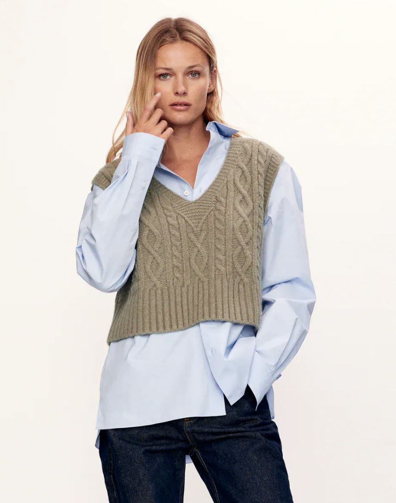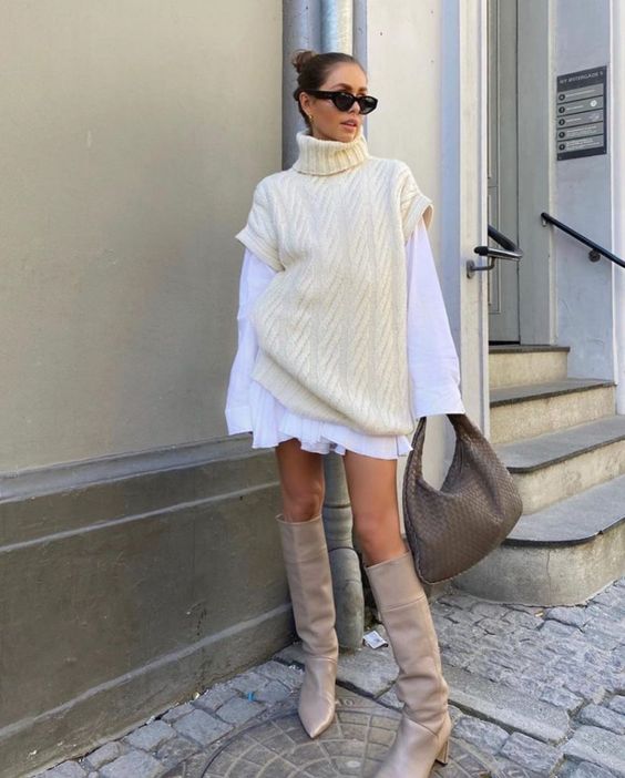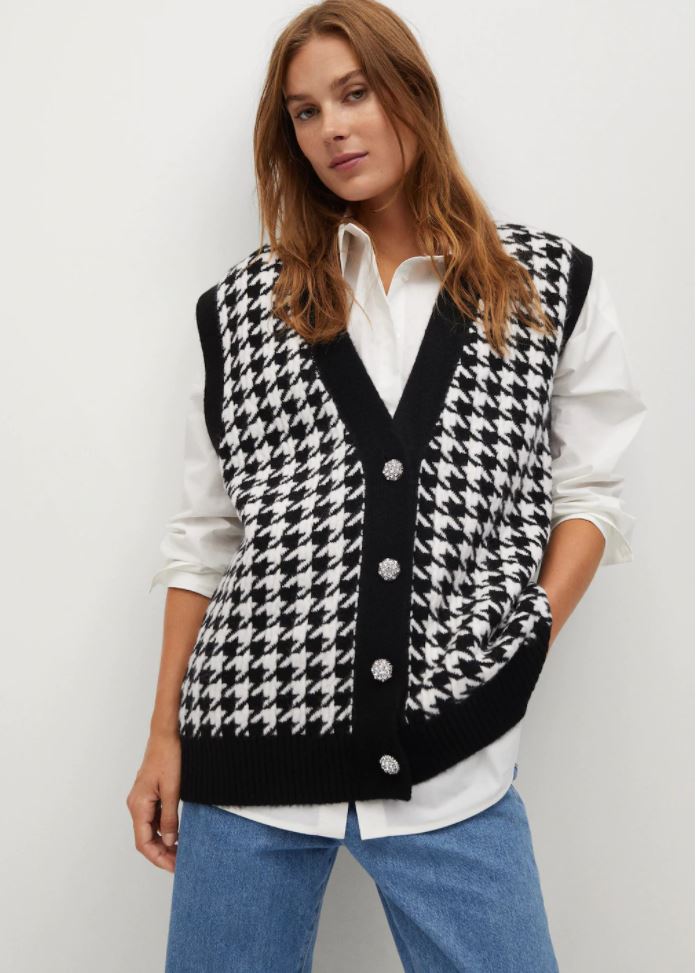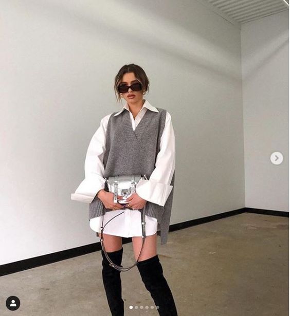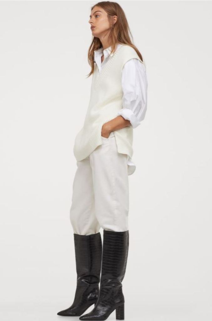 Y la otra tendencia que viene súper fuerte para estar protegidas del clima que cada vez se pone más frío, son los chalecos de punto como esos que usaban nuestros abuelitos o nuestros papás. Es una prenda masculina en sí pero lo interesante esta en como lo combinamos: biker shorts y botas altas, arriba de un vestido, sobre una camisa muy femenina y jeans o leggings, en fin, hay mil y un posibilidades también y sin duda es una prenda que si adquieres vas a usar mucho esta temporada. Te recomiendo comprar uno en color neutro para hacer más fácil el combinarlo, pero si quieres arriesgarte por uno estampado adelante!