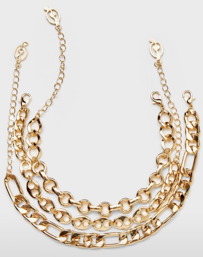 Y es así que este Otoño Invierno estará lleno de accesorios exagerados, grandes y más toscos a los que vimos en temporadas pasadas, así que yo te recomiendo apostar por accesorios statement dorados, es decir, grandes y llamativos: collares y pulseras de cadenas gruesas, aretes grandes como aros, diademas, anillos, en fin, hay un millón de posibilidades. Y podrás usarlos con un outfit básico de T-shirt blanca y jeans, hasta con un vestido ajustado de punto y una gabardina armando looks más divertidos.