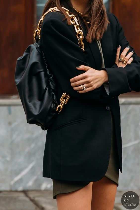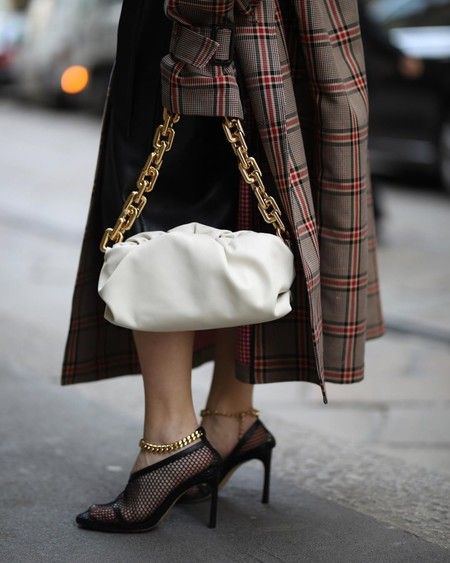 Estoy segura que ya han visto «the chain pouch» el bolso suave con una cadena gruesa y dorada de Bottega Veneta en revistas, instagram y cualquier otra red social. Es un bolso muy lindo que va prácticamente con cualquier look y que en mi opinión es el más popular de este año y de la temporada otoño invierno. Es un bolso de lujo, así que seguramente podrán imaginarse el precio, y si no es así, aquí les dejo un link con una opción donde lo pueden encontrar el bolso original online, el precio varia de acuerdo al color.
