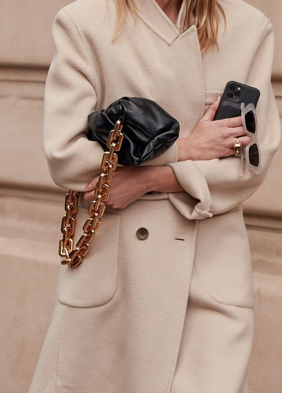 Estoy segura que ya han visto «the chain pouch» el bolso suave con una cadena gruesa y dorada de Bottega Veneta en revistas, instagram y cualquier otra red social. Es un bolso muy lindo que va prácticamente con cualquier look y que en mi opinión es el más popular de este año y de la temporada otoño invierno. Es un bolso de lujo, así que seguramente podrán imaginarse el precio, y si no es así, aquí les dejo un link con una opción donde lo pueden encontrar el bolso original online, el precio varia de acuerdo al color.