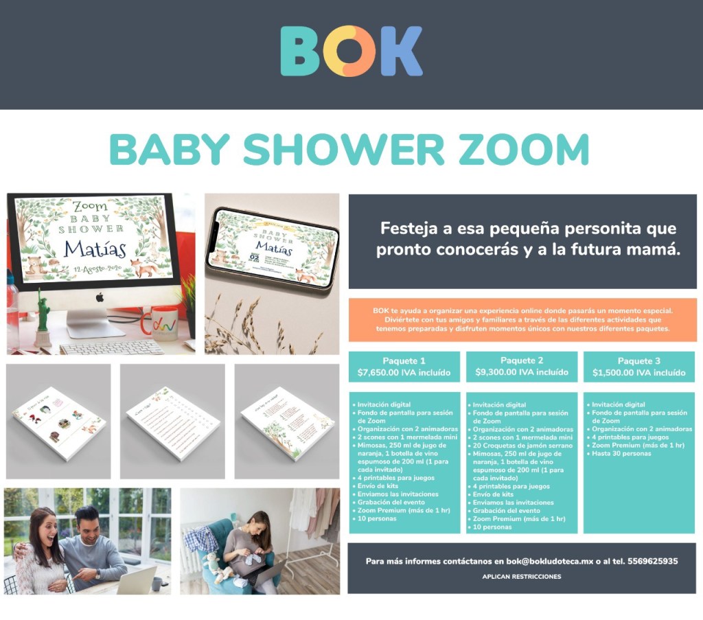 - ¿Existen organizadoras/animadoras de Baby Shower virtuales? la respuesta es sí!, si quieres olvidarte de batallar desde crear la sesión virtual, enviar invitaciones, responder mensajes en ese momento de las que no se pueden conectar, y tener a alguien que se encargue de los tiempos y que se cumplan los juegos, es una buena opción. Yo busqué diferentes proveedores y al final me quedé con uno que me dio justo esto y las que asistieron y yo la pasamos bastante bien, me costó 1,500 pesos. Hay algunos proveedores más sofisticados que te incluyen la decoración en tu casa, mesa de dulces, y un kit más grande para los invitados con decoración también, desayuno, regalos, etc. y ellos se encargan de que hacer los envíos, obviamente también es más caro este servicio, para que lo tomes en cuenta, este si no me equivoco tenía un costo aproximado de $7,500 pesos para 10 personas.