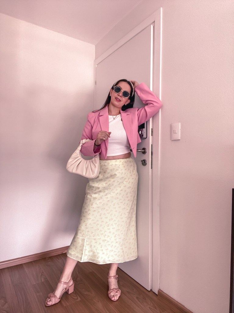 When I found this skirt from the Camila Coehlo x Revolve collection, first I fell in love with the green color, little pink flowers and glossy look, and then I get so excited thinking in all the posibilites of wearing it.